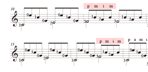 86페이지 '스와니강' 11마디, 14마디에 표기된 손가락 기호 'p i m i'를 'p m i m'으로 정정합니다.