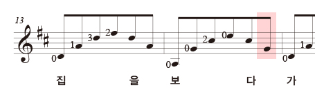 [2판 2쇄] 100쪽 '섬집아기' 14마디 악보 오류 정정