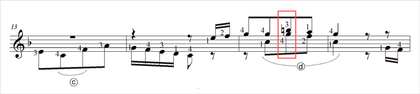 ④ 5포지션 연습곡' 악보에 표기된 15마디 3번째 음 중 윗 음을 정정합니다.