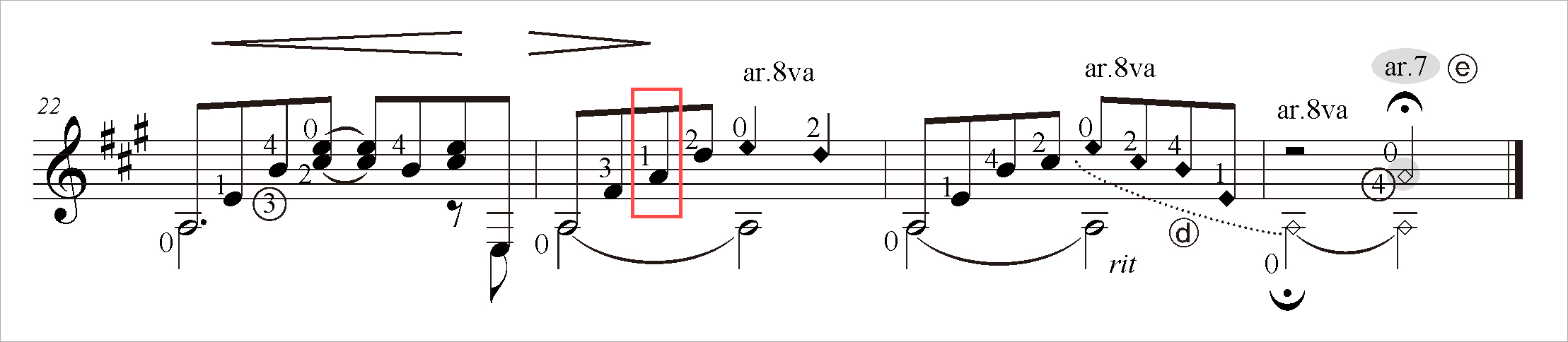 * 수정 전 : 3번째 음 [라]의 손가락 번호 4