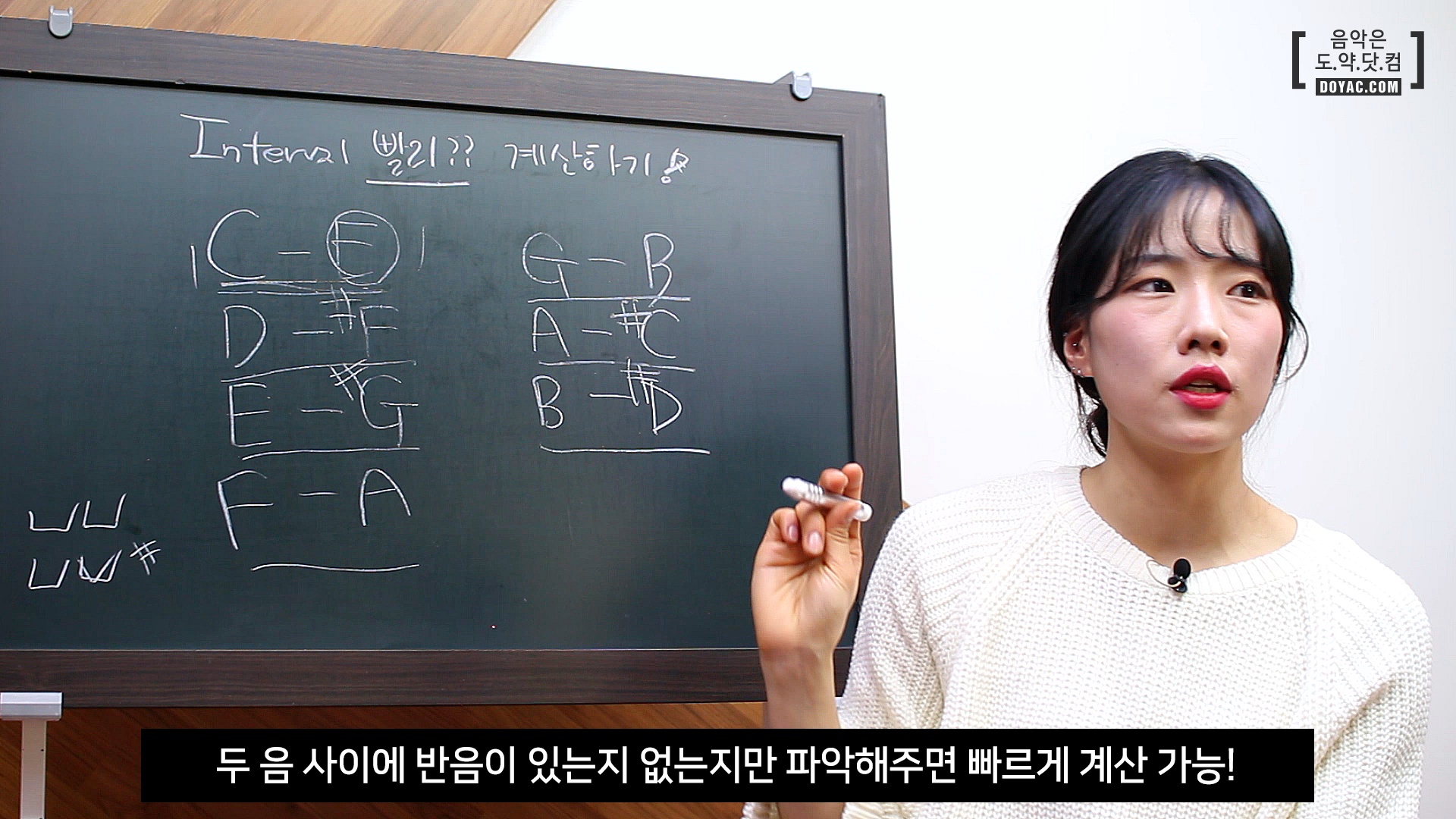 인터벌 계산을 할 때는 제일제일 중요한 게 음정 사이에 반음이 있는 지를 찾아주는 것인데요!