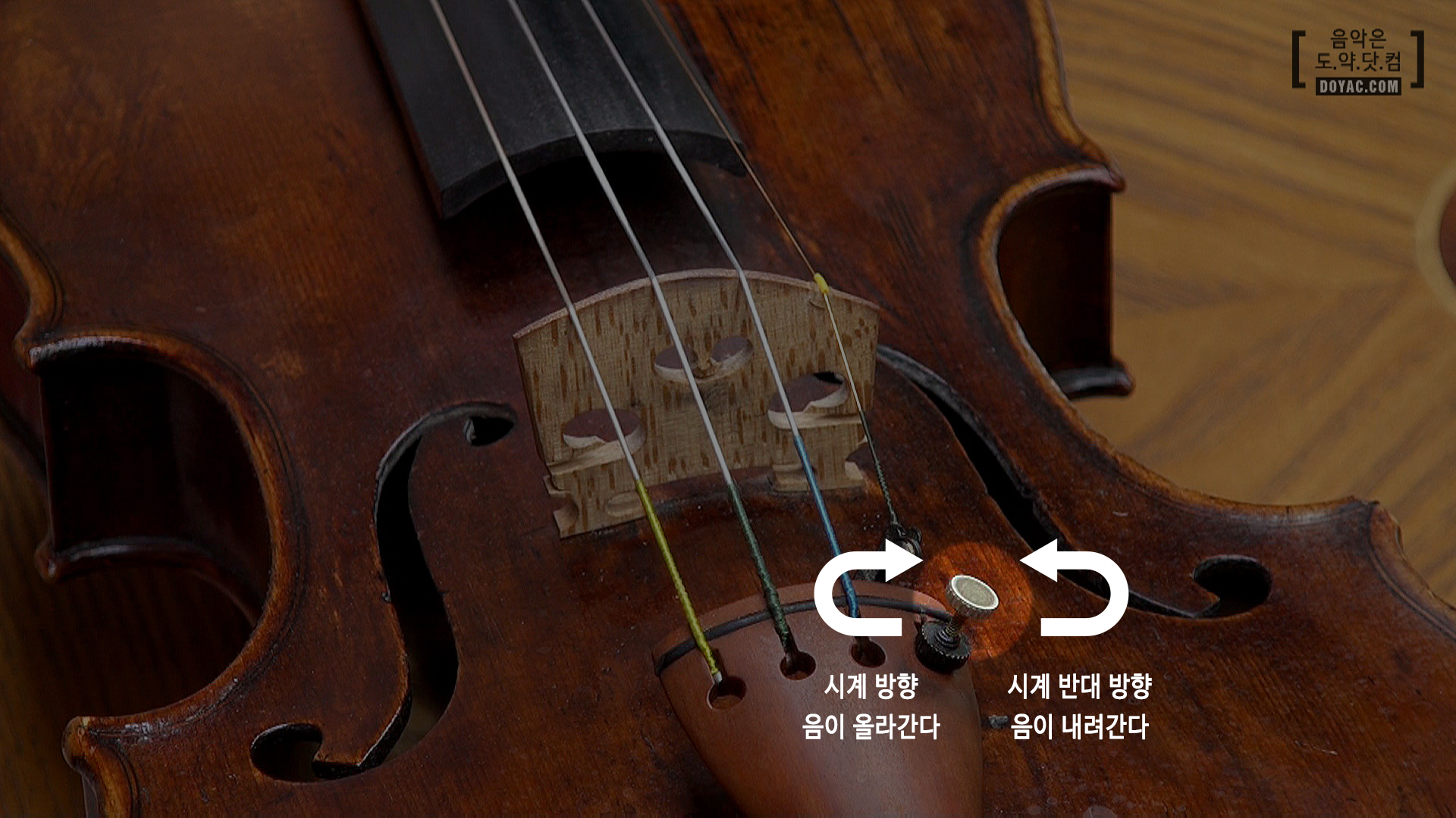 언제나 바이올린을 연주하기 전에는 꼭 음정을 체크하셔야 합니다. 바이올린은 1줄을 시작으로 [미(E)-라(A)-레(D)-솔(G)]의 음정을 가지고 있는 거 아시죠? 연주를 해보시고 '바이올린의 음정이 달라졌다!' 하는 경우에는 아래 방법들을 사용하여 조율해 주세요.