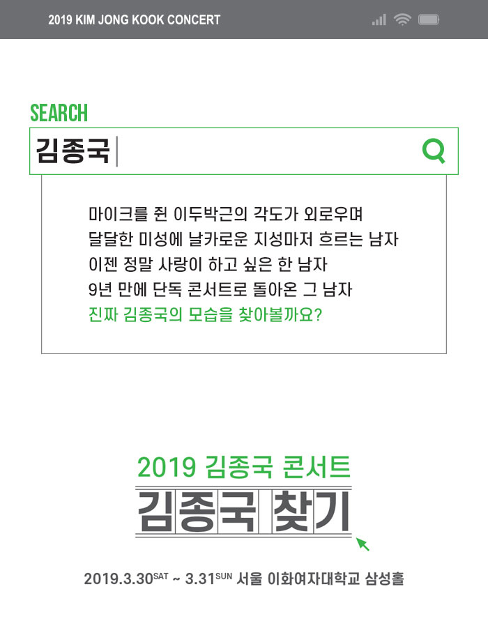 그럼 이번 #이화여자대학교 에서 열리는 #김종국찾기 콘서트에서 진짜 김종국의 모습을 한 번 찾아볼까요?