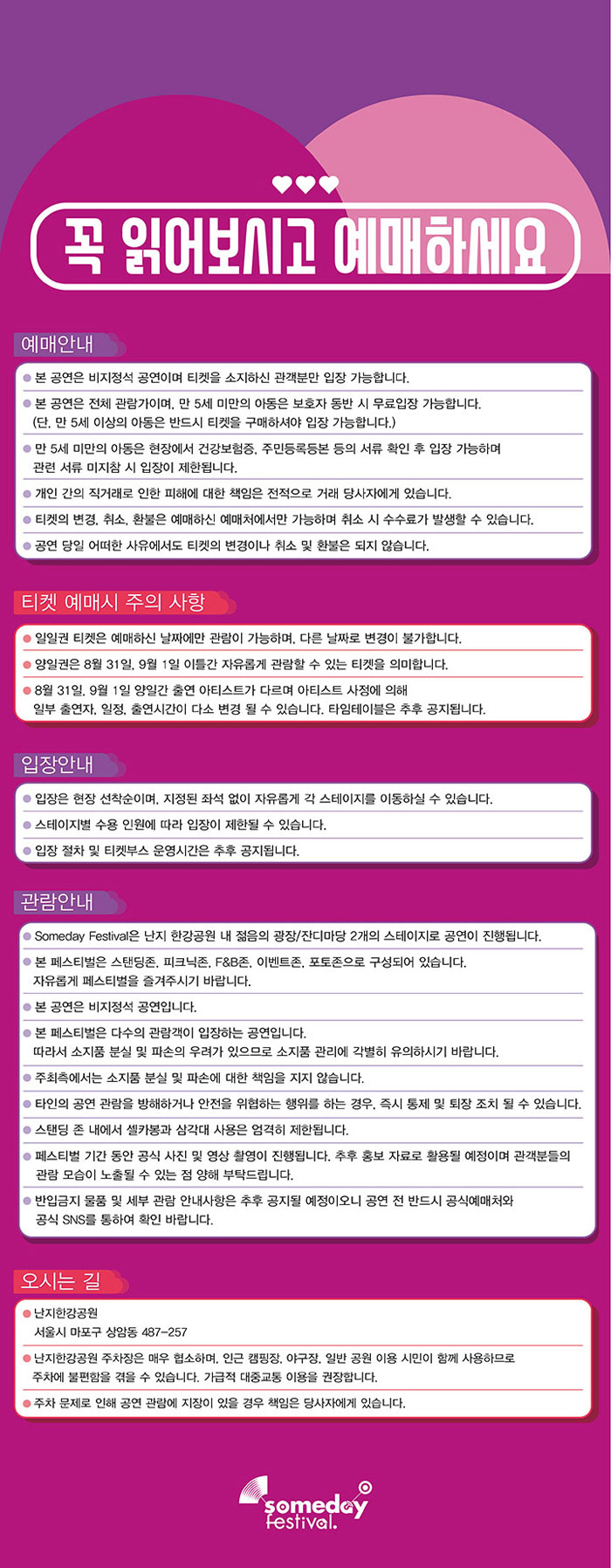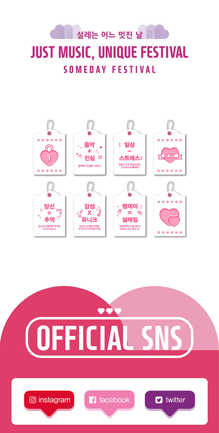 가을의 시작에서 음악의 감동을 선사하는 뮤직페스티벌! #Someday Festival이 2019년 다시 한번 관객들과 설레는 시간을 갖고자 돌아왔습니다. 올해로 5주년을 맞이한 이 페스티벌은 잊지 못할 추억을 만들어드리기 위해, 음악이 선사하는 즐거움과 낭만이 가득한 무대를 준비하고 있다고 하는데요. 매년 최고의 라인업을 선보였던 #썸데이 페스티벌2019는 이번에도 후회없는 라인업과 함께 8월 31일(토)~9월 1일(일) 양일간 서울 #난지한강공원에서 개최된다고 합니다. 빵빵한 아티스트들의 음악과 함께 특별한 가을날을 만들러 가보시는건 어떠세요? :D
