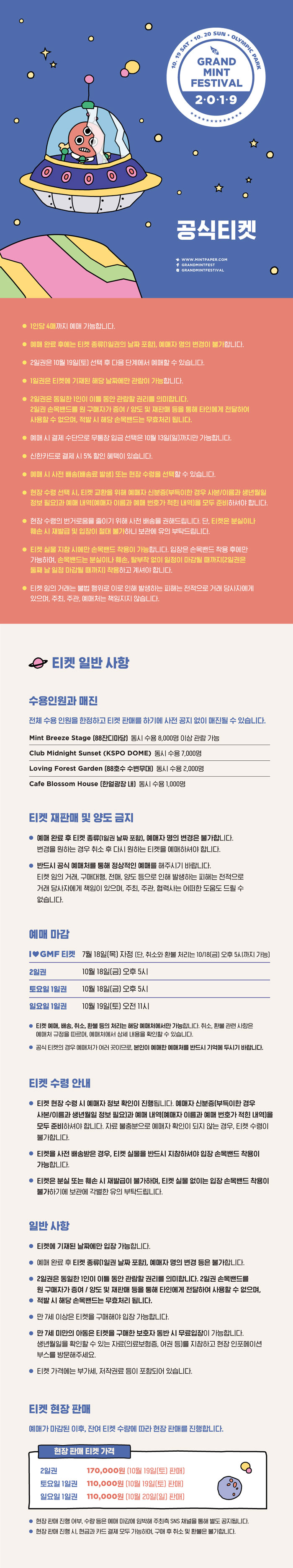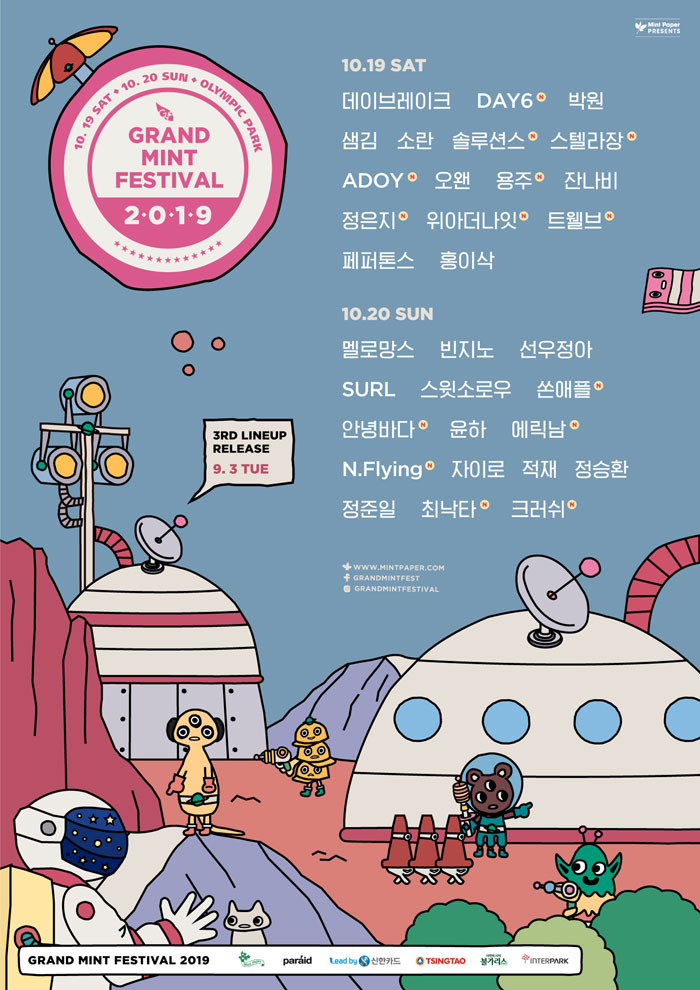 바람이 선선하고 날씨가 좋은 매년 10월 말에 찾아오는 뮤직페스티벌! 올해로 13회를 맞이한 #그랜드민트페스티벌2019은 1년간 진행한 민트페이퍼의 공연인 '민트페스타'를 결산하는 의미로 열린다고 하는데요. 매년 최고의 라인업을 선보였던 그랜드민트페스티벌은 이번에도 후회없는 라인업과 함께 10월 19일(토)~10월 20일(일) 양일간 서울 #올림픽공원 일대에서 개최된다고 합니다. '도심 속의 페스티벌'을 지향하는 만큼 돗자리펴고 앉아서 몸과 마음도 편하게 음악을 즐길 수 있는 페스티벌인 것 같은데요. 많은 분들이 궁금해 하실 아티스트의 라인업 한 번 보시죠 :)