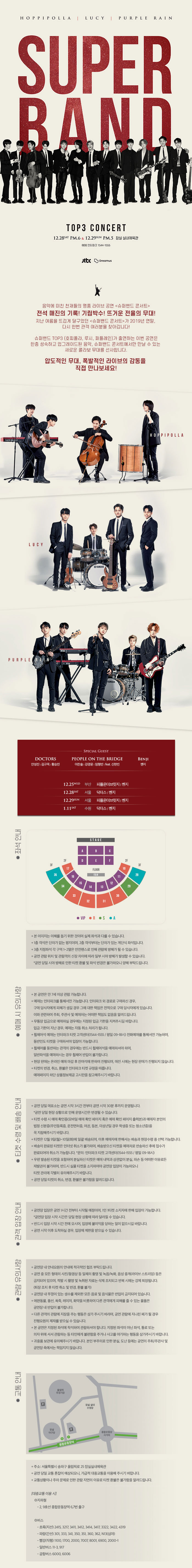 슈퍼밴드 #TOP3 (#호피폴라, #루시, #퍼플레인)가 출연하는 이번 공연은 한층 성숙하고 업그레이드된 음악, 슈퍼밴드 콘서트에서만 만날 수 있는 새로운 콜라보 무대를 선사합니다!