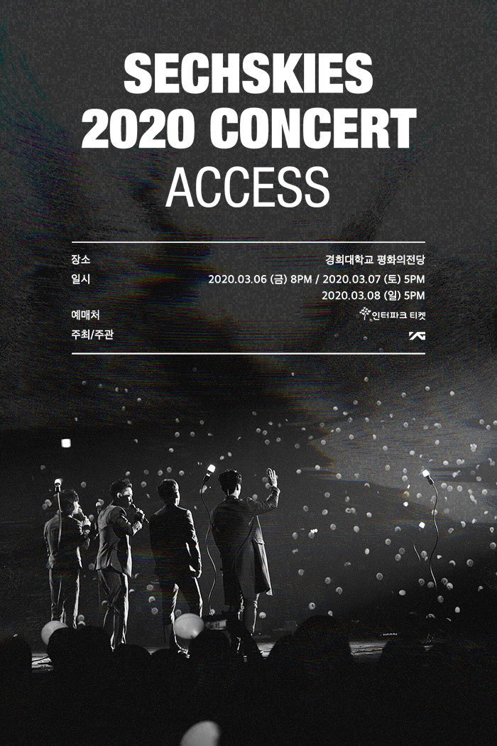 팬들의 열렬한 환호 속에 2016년에 재결합한 #젝스키스 #SECHSKIES 가 2020년 [ACCESS] 콘서트를 개최합니다. :D 이번 #젝스키스콘서트 는 3월 6일부터 3월 8일까지 3일간에 걸쳐 '경희대학교 평화의전당'에서 열립니다. 젝스키스가 준비한 새로운 세계! 젝스키스만의 강렬한 아우라로 가득 찬 'SECHSKIES 2020 CONCERT [ACCESS]', 젝스키스가 열어나갈 전율의 스테이지에 함께해 보세요.