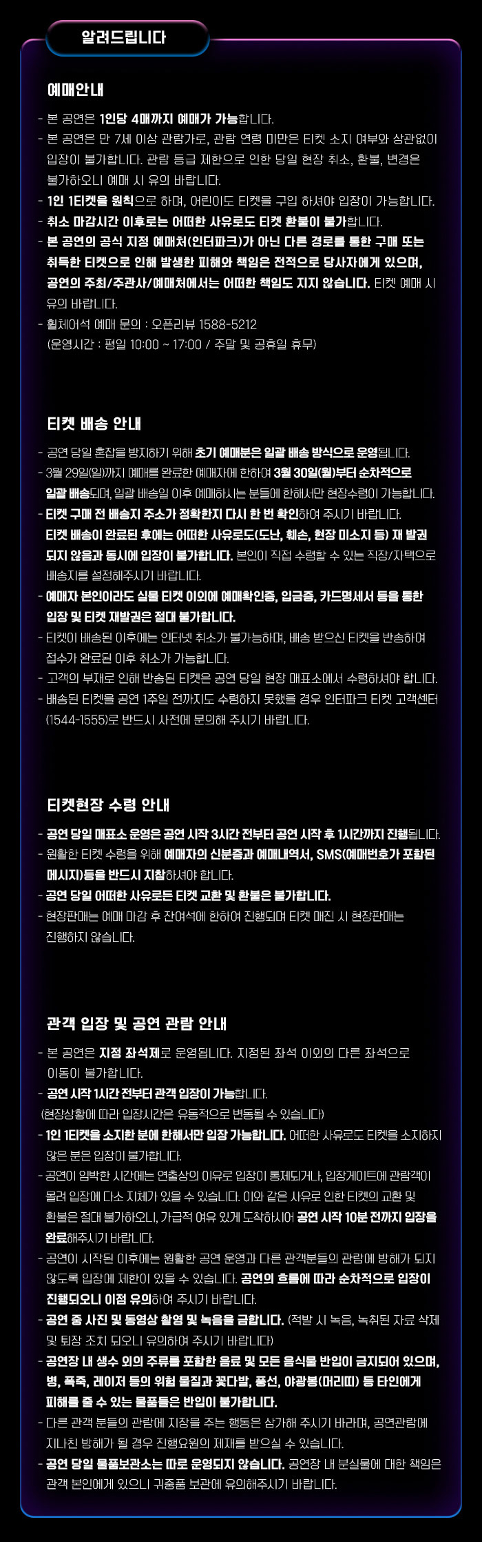 * 하단의 이미지는 서울 콘서트 기준 이미지임을 알려드립니다. 콘서트 일정 등의 자세한 내용은 [인터파크 티켓 - 콘서트] 에서 확인하실 수 있습니다.