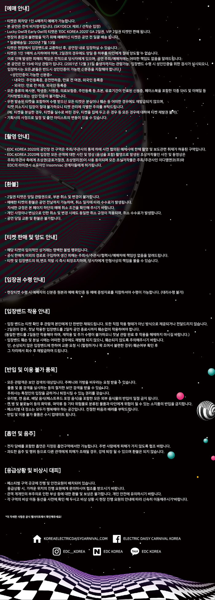 아직 라인업이 공개되지 않아 여러분께 자세한 라인업을 알려드릴 수는 없지만, 라인업 공개 후에는 EDC KOREA 페이지에서 확인 가능합니다. EDC KOREA 페이지 : https://korea.electricdaisycarnival.com/