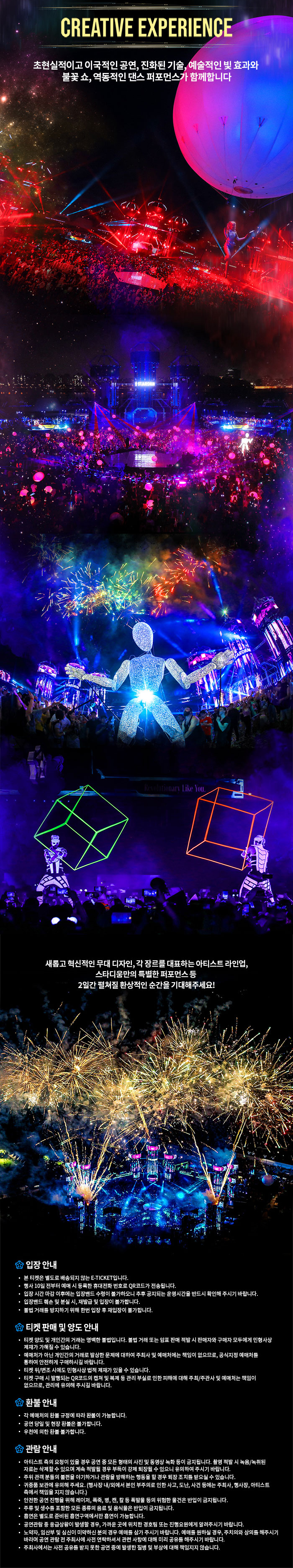초현실적이고 이국적인 공연, 진화된 기술, 예술적인 빛 효과와 불꽃 쇼, 역동적인 퍼포먼스가 함께합니다.