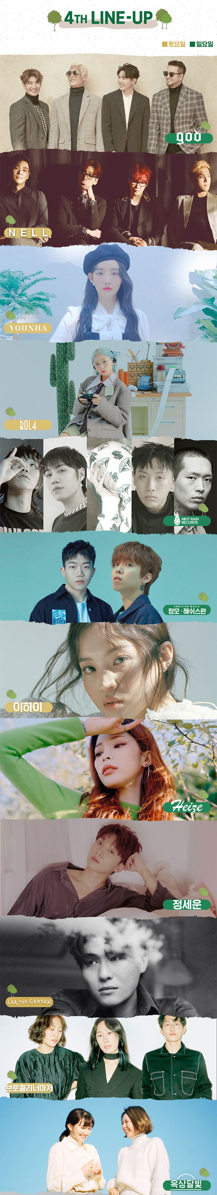4월 16일까지 발표된 라인업으로는 god, NELL, 윤하, 볼빨간사춘기, 창모, 이하이, 브로컬리너마저, 옥상달빛, 헤이즈, 윤딴딴 등등인데요, 지금까지만 봐도 정말 어마어마한 라인업입니다! 그런데 더 충격적인 것은 이 라인업이 최종이 아니고 'MORE TO COME'이라는 사실입니다. 정말 이 공연 기대됩니다! :)