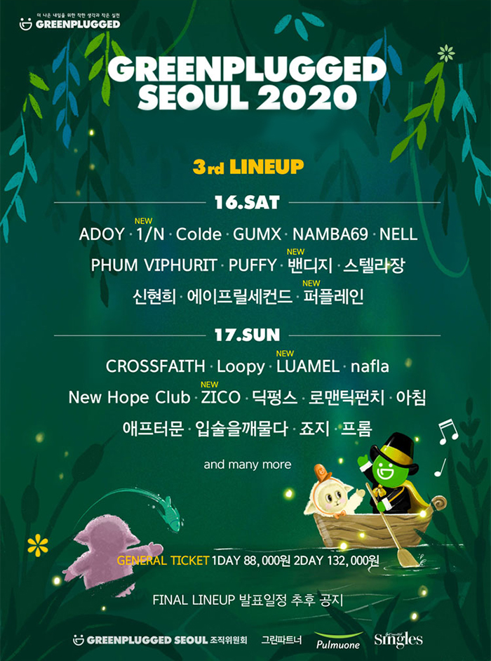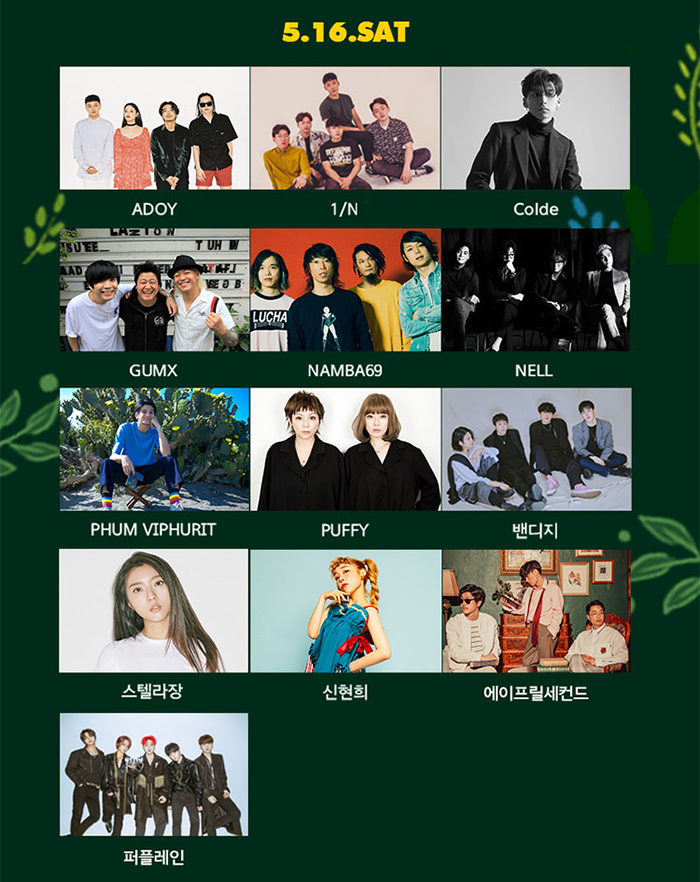 지금까지는 3차 라인업까지 발표되었는데요! 토요일 라인업으로는 '신현희, 스텔라장, NELL, ADOY, 1/N, Colde, GUMX, NAMBA69, PHUM VIPHURIT, PUFFY, 밴디지, 에이프릴세컨드, 퍼플레인'이 확정되었습니다.