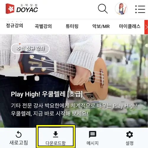 3. (안드로이드 기기만) 앱 하단에 나오는 메뉴 중 [다운로드함] 버튼을 클릭해 주세요.