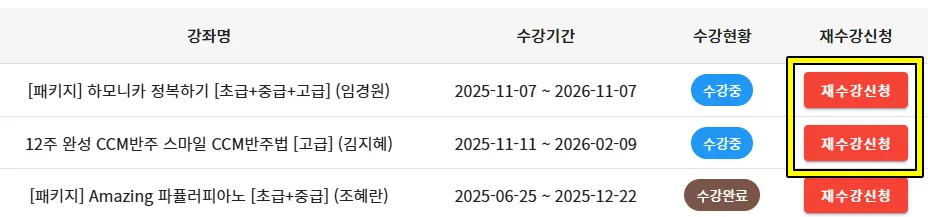 ※ 단, 곡별강의/연장 강의는 재수강을 지원하지 않습니다.