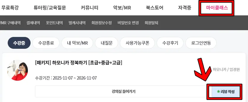 1) 로그인한 다음, [마이클래스]로 이동합니다.