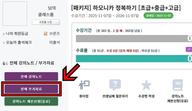 1) 전체 강의 음원자료(mr)/부가자료를 한 번에 다운로드하는 방법