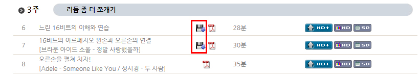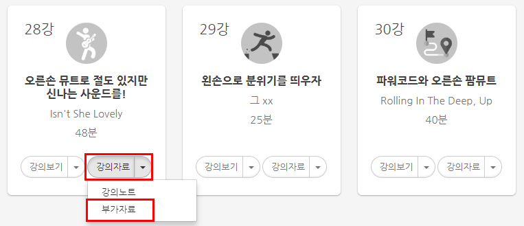 2) 각 강의마다 음원자료(mr)/부가자료를 각각 다운로드하는 방법
