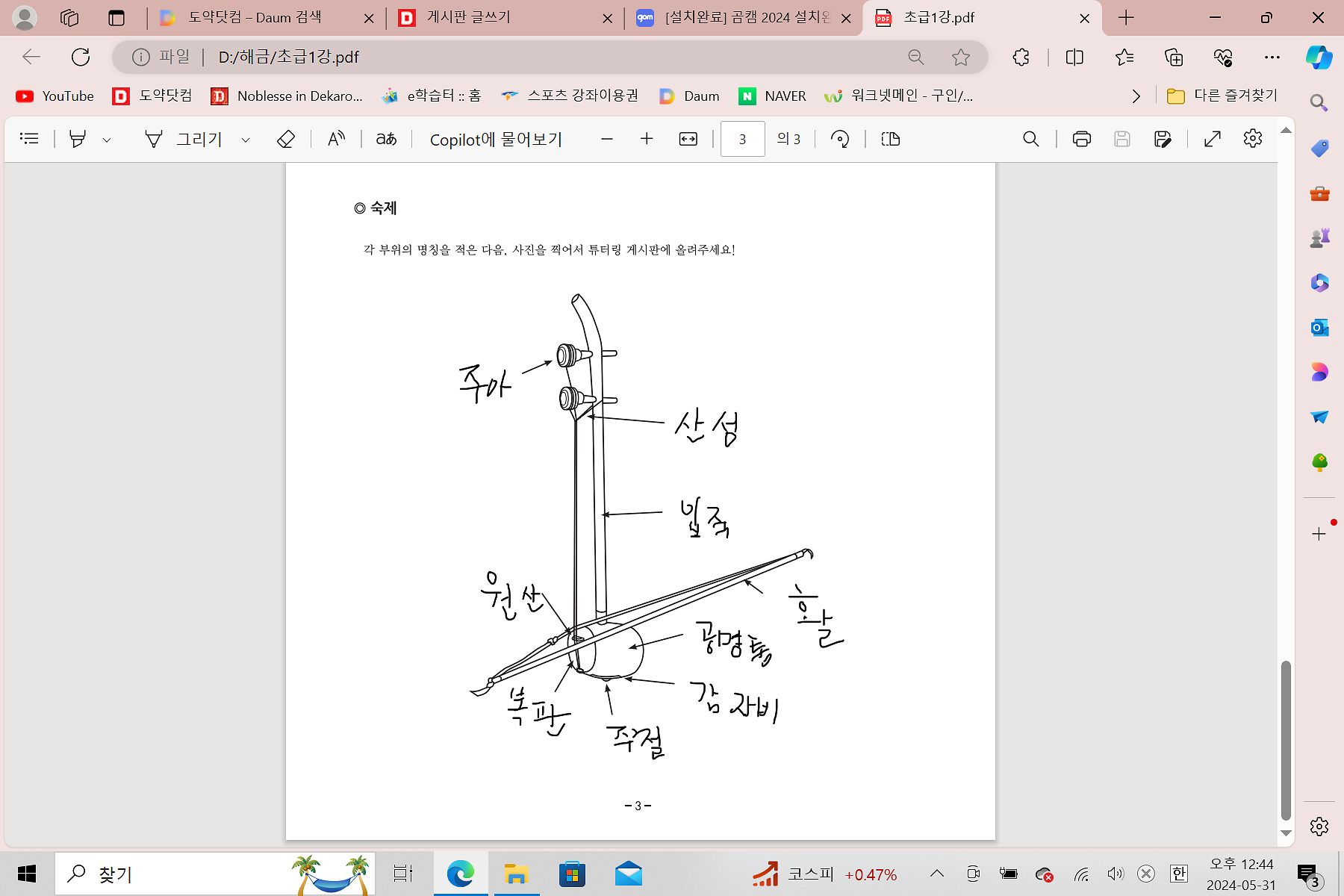 특별하게 배우는 해금교실 [초급] 1강 숙제 제출