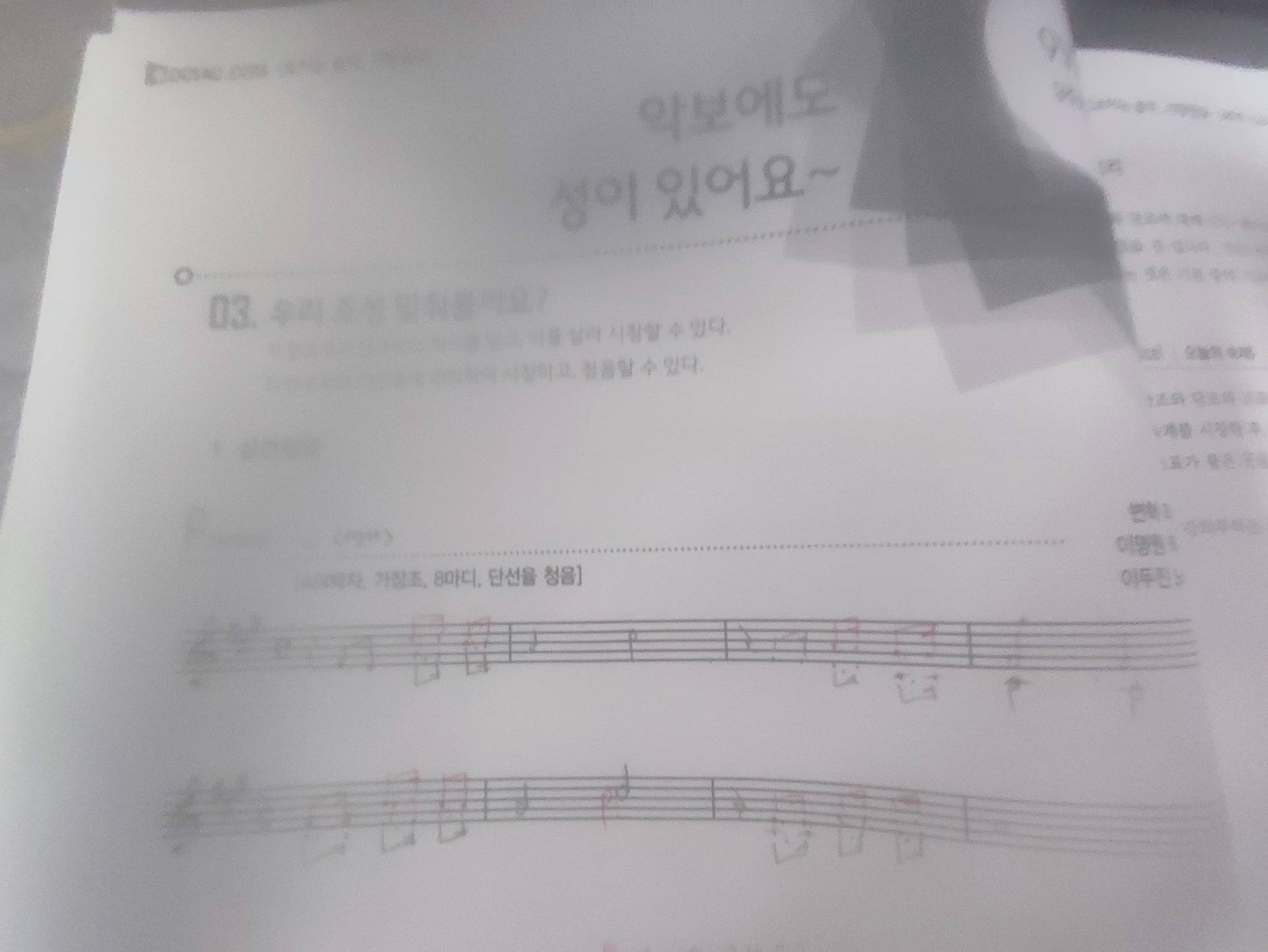 과제 제출합니다. 1.임시표가 나오면 잘 음정이 잘 모르겠습니다. 2\. 첫음과 끝음만 잘 들리는 것 같습니다. 질문) 청음시 음정을 하나 하나 따로 듣고 청음을 해야될지 마디(프레이즈)별로 청음을 해야될지 잘 모르겠습니다.