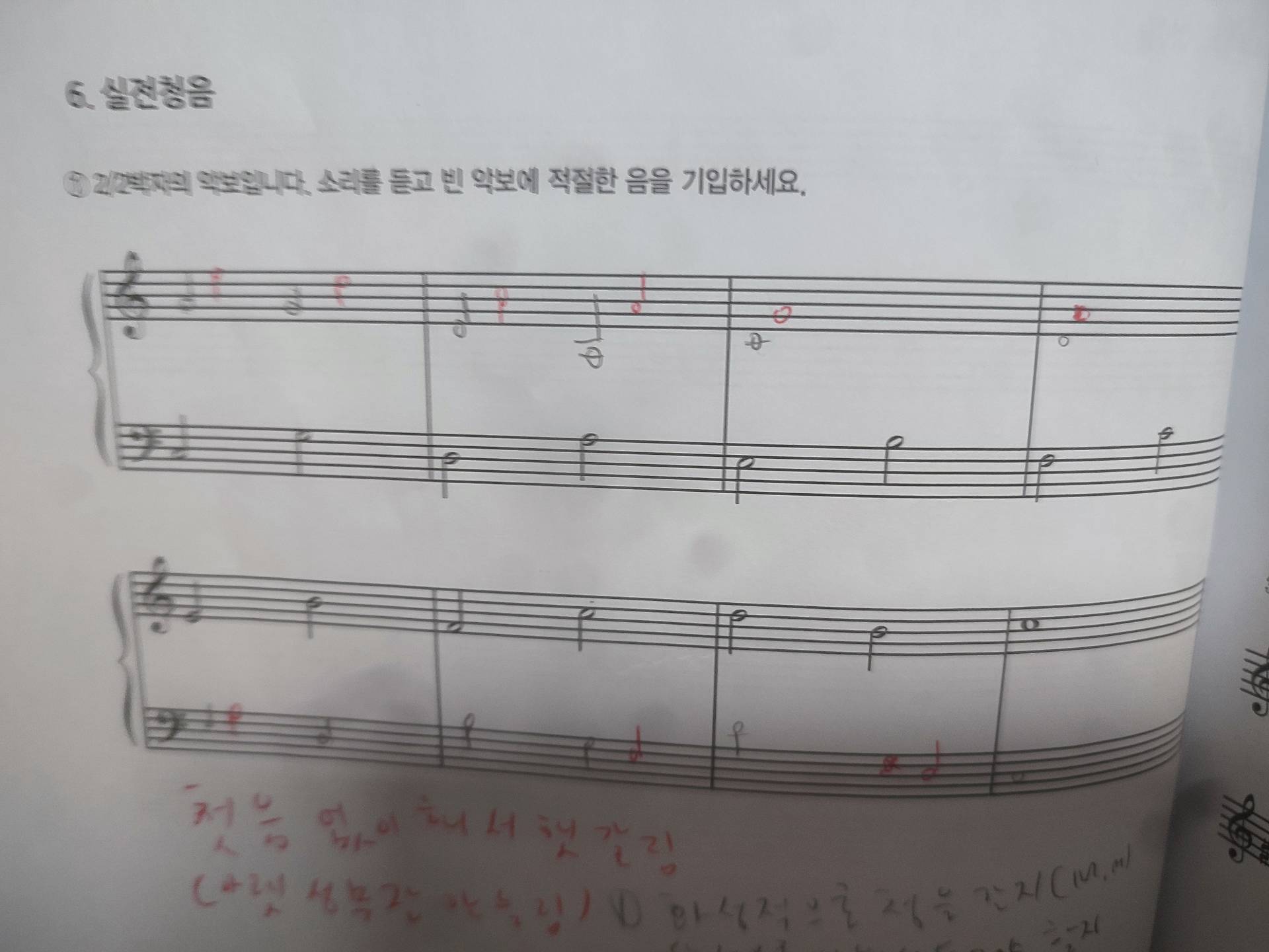 도에 관해서 복습했습니다. 실전청음 첫 음 없이해서 __헷갈렸습니다__. 아랫 성부가 잘 __안 들립니다__. 질문: 화성적(M,m 등)를 __통째로__ __청음 해야__ 할지 __단선율 적(위에성부 아랫성부)으로__ 나눠서 청음을 __해야 할지__ 잘 모르겠습니다.
