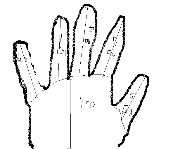 선생님 안녕하십니까? 저는 기타강의초급을 듣고있는 하명수입니다. 제가 기타를 연주할때 손이 좀 작아서 불편한데 이 정도 크기의 손이면 기타치기에 조금 불리한가요?? 제 손이 중2인데 비해 좀 작아요... 아 사진첨부가 안되서 그림이라도 그렸어요. 손바닥 끝에서 중지 끝까지 16cm 정도에요..