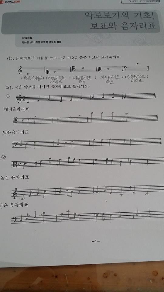 [숙제제출] 악보보기의 기초!보표와 음자리표
