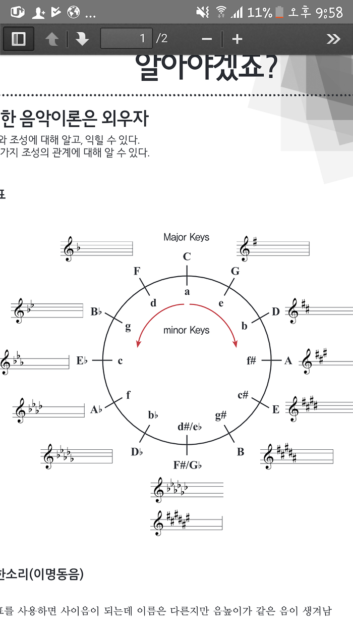 1주차 2강을 듣고 강의노트에 동그라미에 조가 적혀있는 그림을 보다가 중요한건 아닌거 같은데 문득 그냥 든 궁금증으로 질문 합니다. ㅎㅎ 1. Gb/F#에서 플랫이 6개 붙었을땐 Gb이라고 하고 샵이 6개 붙었을땐 F#이라고 하는 건가요? 2. 플랫이 5개 붙었을때와 샵이 7개 다 붙었을때에 으뜸음이 이명동음인데 둘다 Db이라고만 하나요? C#이라고는 안하나요? Db만 적혀있길래 ㅎㅎ 3. 샵이 5개 붙었을때와 플랫이 7개 다 붙었을때도 2번 질문과 같은 관계인데 이것도 B라고만 하나요? Cb이라고는 안하나요? 별로 중요한것도 아닌거 같고 그냥 궁금증으로 올린건데 올려도 되나싶네요 ㅎㅎ...