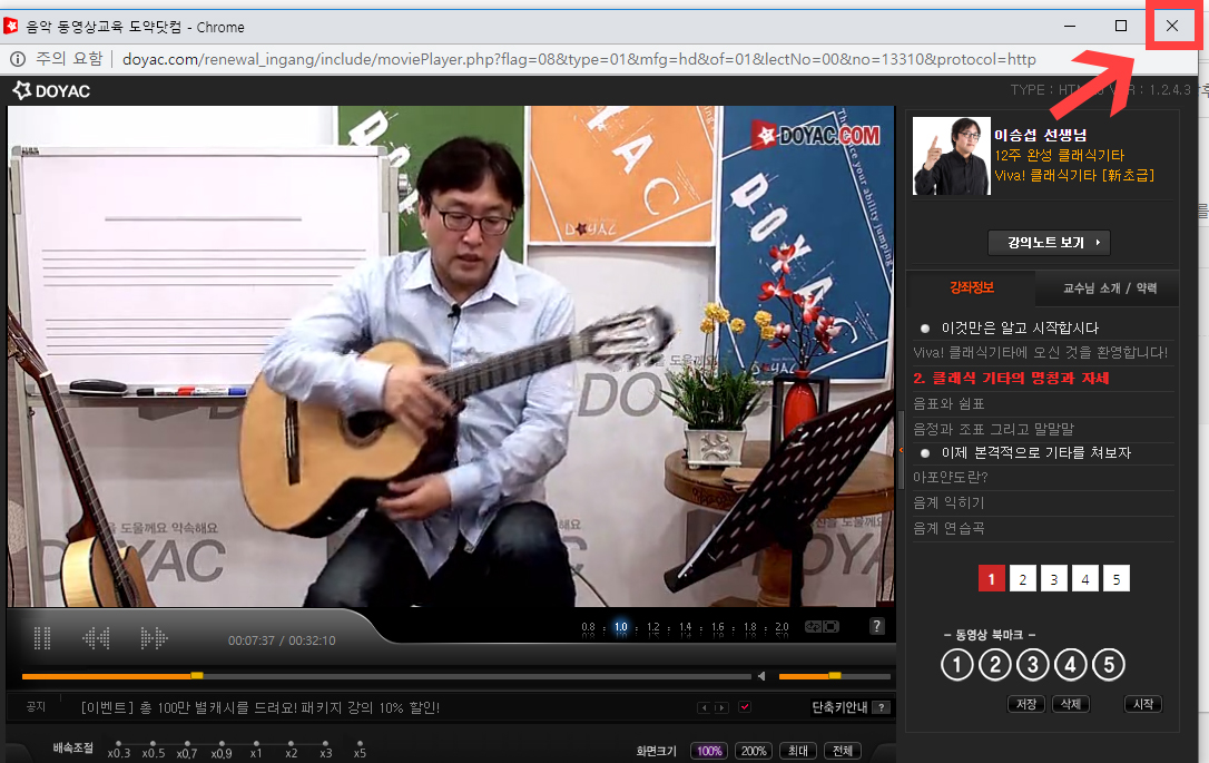 1. 수강중인 과목 및 난이도(ex, Viva! 클래식기타 [초급+중급])