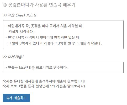 : 19강 숙제가 아침이슬 연습곡으로 되어있네요. 책에는 그 악보가 없어요.